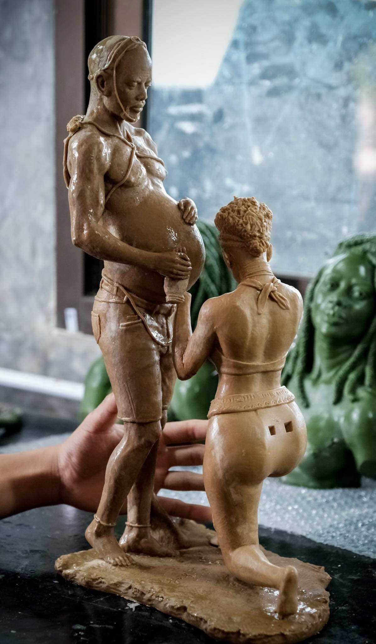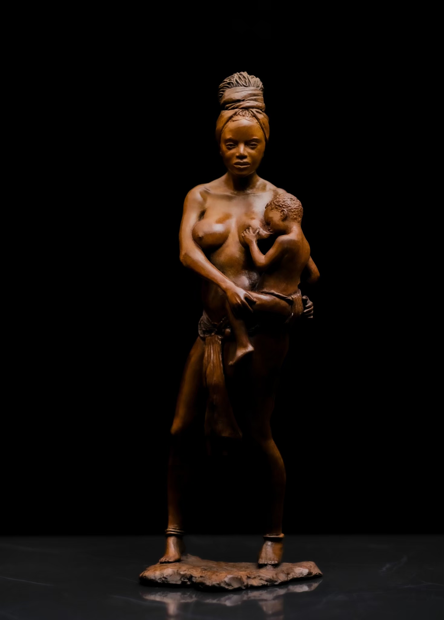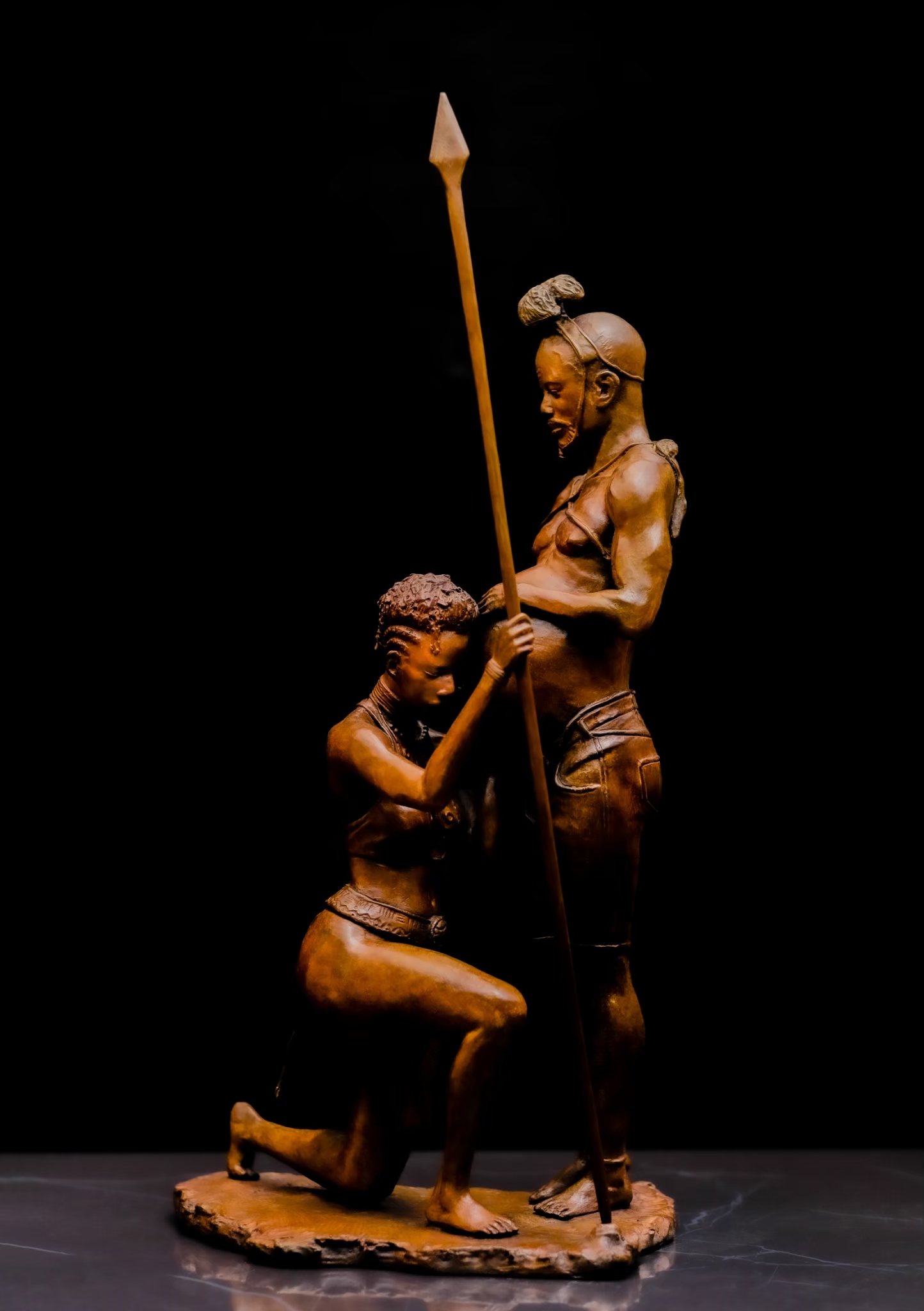 “Ordeal” is a thought-provoking bronze sculpture that delves into a tribal narrative of love, tradition, and resilience.