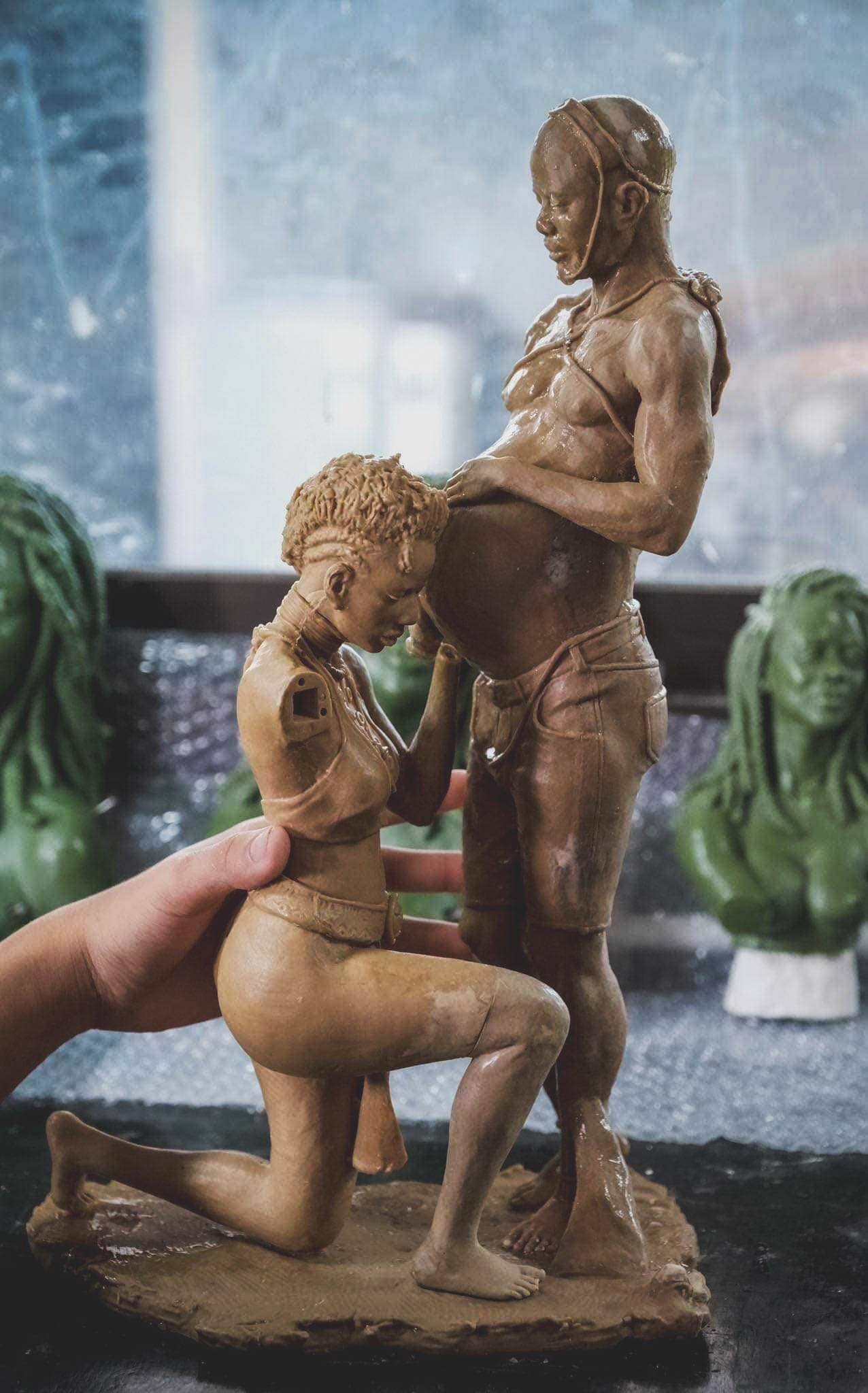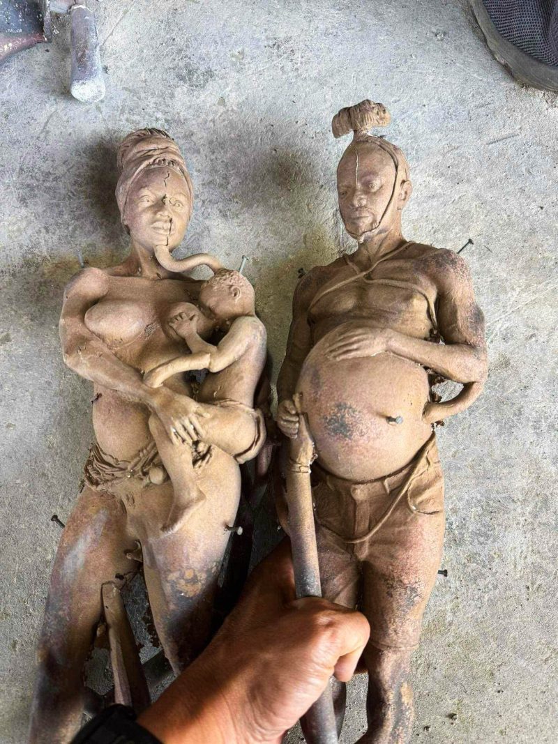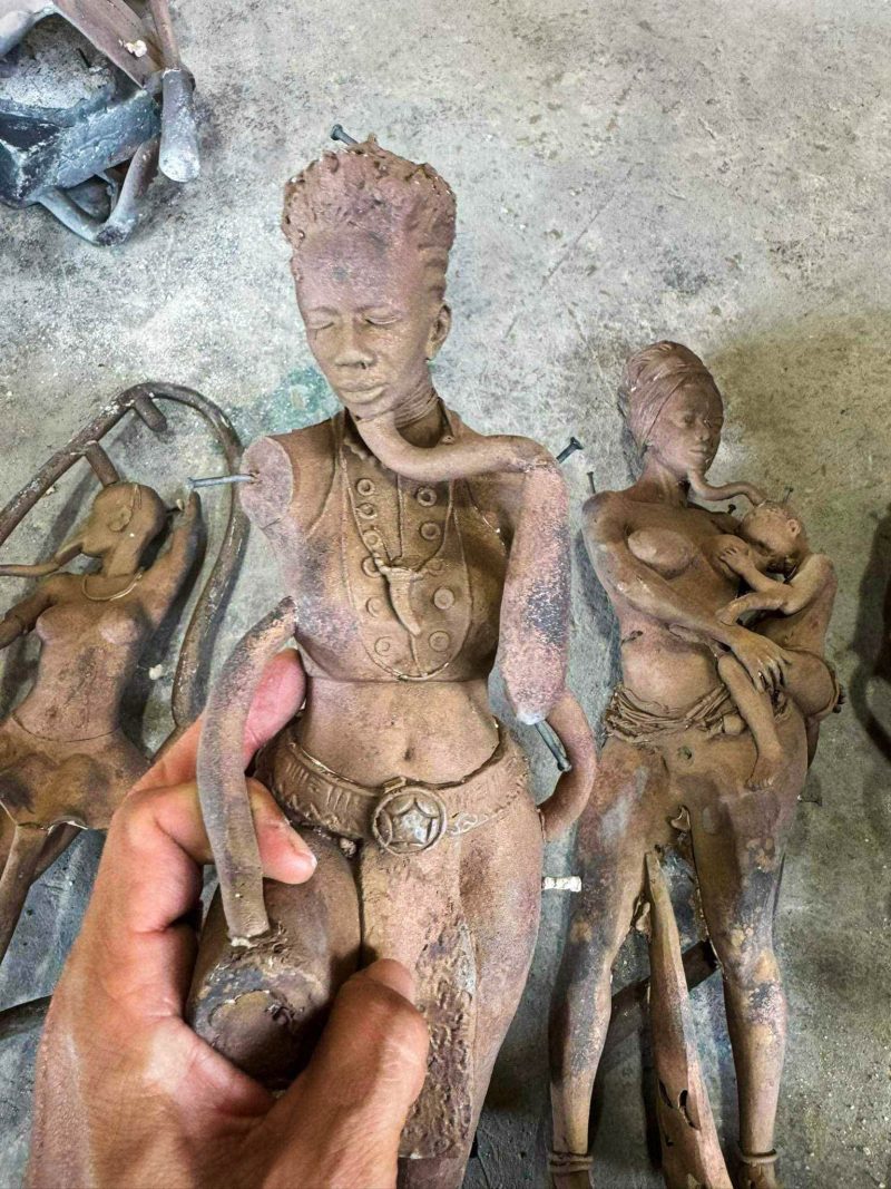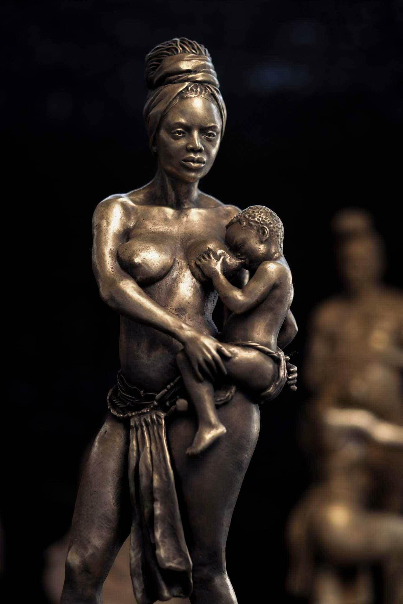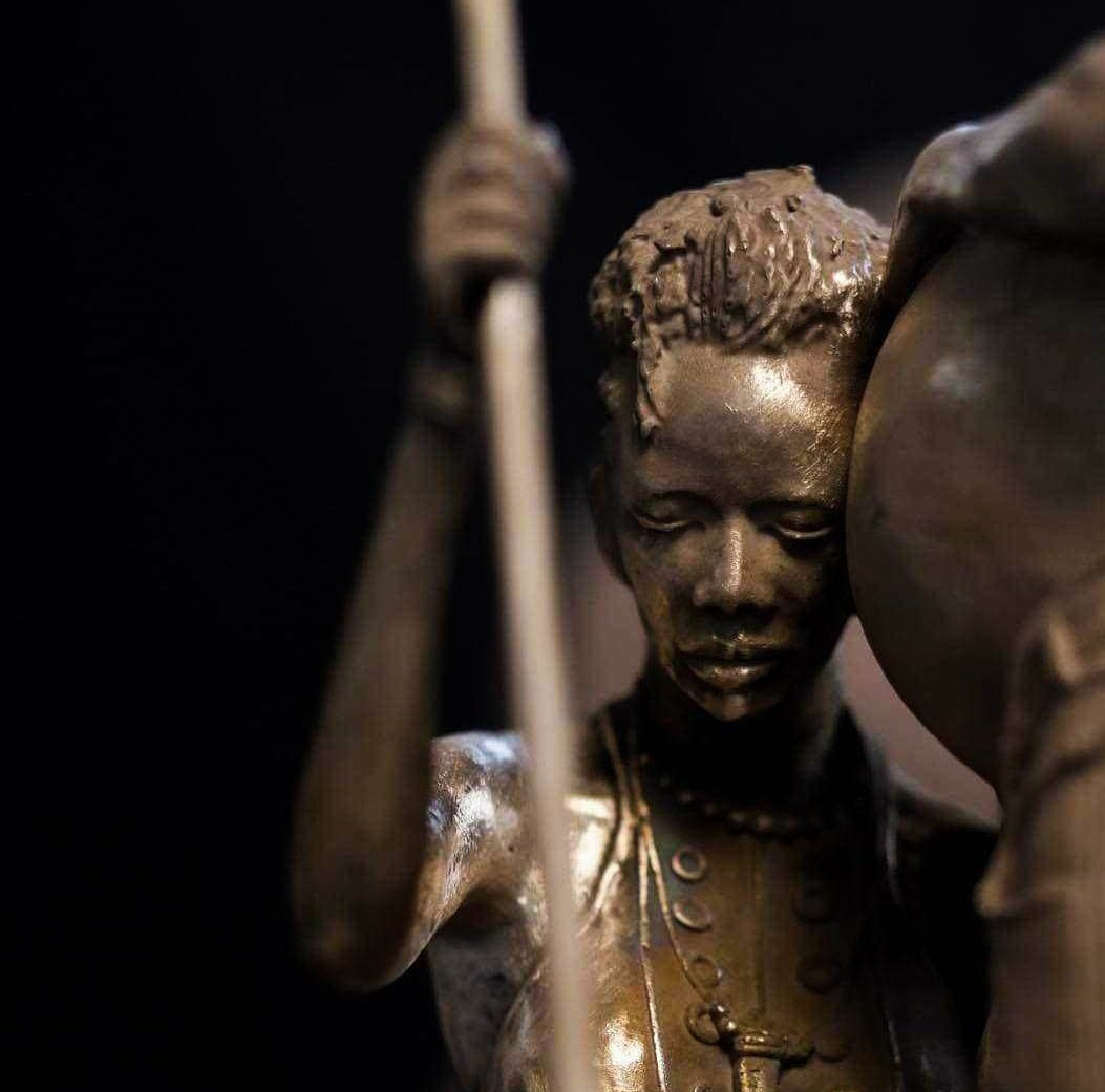 Kumi Samuel expertly employs the ceramics shell technique in conjunction with bronze casting to bring this poignant story to life. The intricate details in the sculpture convey the emotional depth of the narrative, highlighting themes of love, tradition, and the resilience of tribal life.